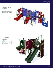 Structures Addison Rose AP-0009 2-12 Child Capacity 31 Use Zone: 41’ x 23’ Chapel Hill AP-0035 2-12 Child Capacity 20 Use Zone: 29’ x 28’ VISIT US ONLINE at APCPLAY.COM 15