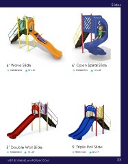 Slides 6’ Wave Slide 6’ Open Spiral Slide 90008036XX 15’ x 30’ 90008057XX 18’ x 25’ 5’ Double Wall Slide 5’ Triple Rail Slide 90008005XX 15’ x 29’ TFR09512XX 28’ x 17’ VISIT US ONLINE at APCPLAY.COM 33