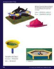 Independent Play Whale Sand & Water Table This fascinating event allows children to learn US and metric dimensions. ADA accessible. Table: 90000007XX 36”x72” Cover: 90000009XX 36”x72” Sand/Planter Basin Standard: TFR14260XX ADA: TFR14267XX SANDBOX 38 TO PLACE AN ORDER CALL 1-888-401-6446